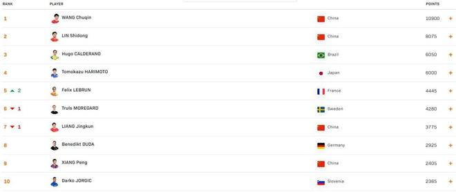 WTT的最新排名宣布了:王楚清是男子10,000分,S
