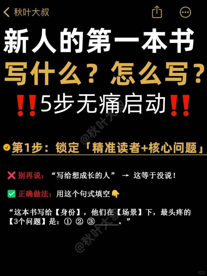 很多新人都卡在想写书却不敢动笔:❌“我没出过书,可以吗?” ❌“内容太普通了,没人会看吗?” ❌“写了几天就不写了……”事实是,90%的实用书都是普通人写的。只要你有经验、有方法、愿意帮人解决问题,就可以写!我已经向超过 358 位业余作者证明了以下方法。只需 5 个步骤即可让您进入正确写书的状态,并有一个良好的开端。 ❤️ 不要等到“准备好”才开始。你的第一本书不必是完美的,它只需有用、可用且必要即可。现在,只需填空:“这本书是为______写的,他们最头痛的是______。”如果你迈出这一步,你就会打败90%的人。如果您是初学者并且不知道如何写书,请不要担心。我于 1 月 20 日开始了我的第一个私人书籍写作课程18年,8年来帮助超过355名学生出版独家书籍。还有数十本由出版商签名并正在出版的书籍。扫码进行1对1咨询。也许你就是下一个从0到1出书的人!